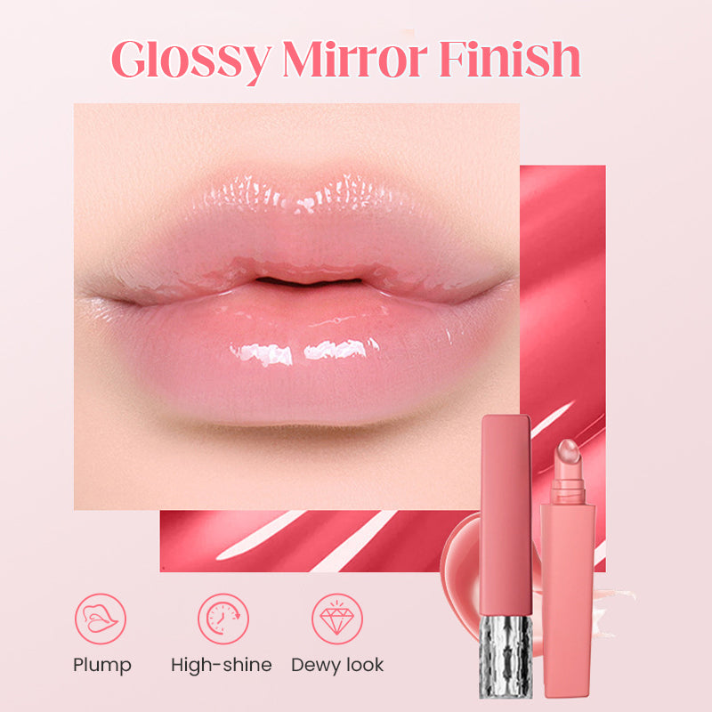 HØYGLANSENDE GLOSSY FINISH : Oppnå en krystallklar, speilblank glans som fremhever din naturlige leppeform. Denne ikke-klebrige formelen glir jevnt på og skaper et fyldig, duggfrisk utseende uten noen tung eller fet følelse.