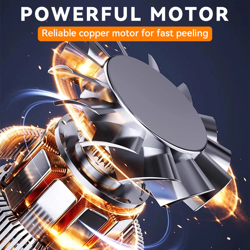 KRAFTIG KOBBERTRÅDMOTOR – Denne elektriske skrelleren er utstyrt med en høytytende kobbertrådmotor, og sikrer effektiv og rask skrelling av diverse frukt og grønnsaker. Motoren leverer jevn kraft, slik at selv små frukter kan skrelles uanstrengt uten at de stopper eller mister ytelse. Dens holdbarhet og pålitelighet gjør den til et tidsbesparende tillegg til ethvert kjøkken.