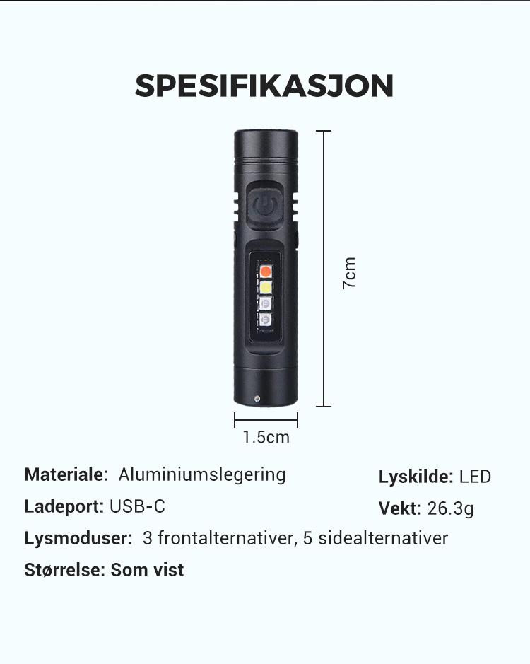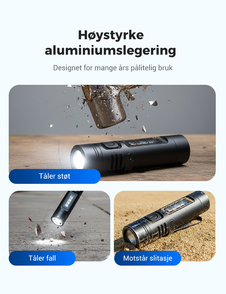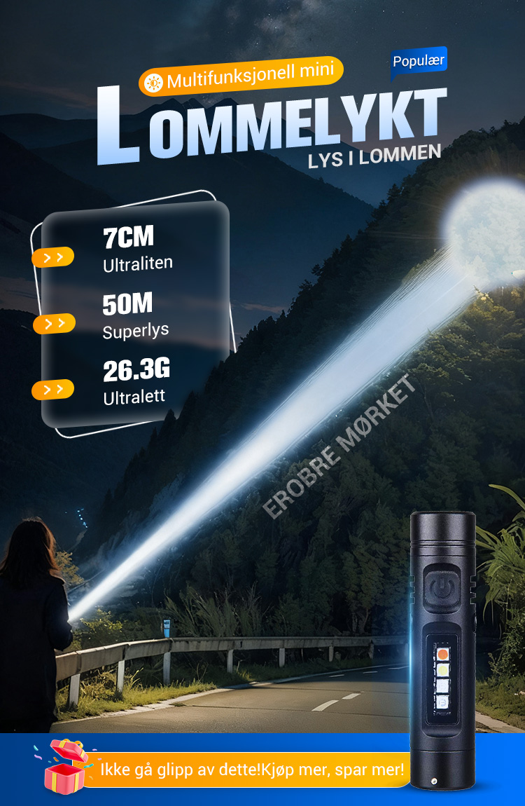 Multifunksjonell mini-lommelykt i aluminiumslegering