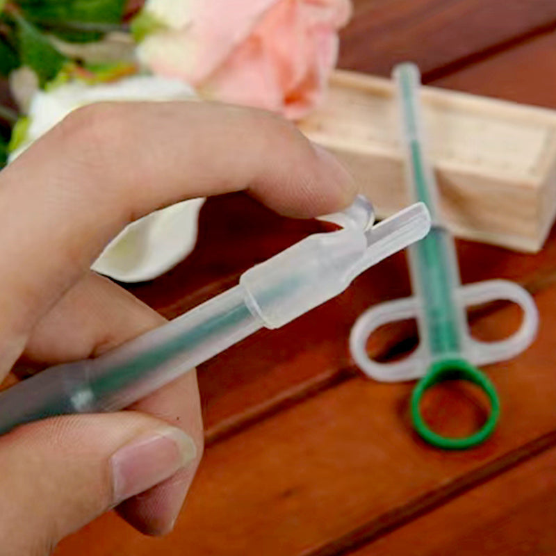 - ✔ Enkel å bruke: Trykk forsiktig på stempelet med hånden for å føre pillen eller melken til kjæledyrets munn. Dispenseren har to myke silikonspisser, der den åpne siden brukes til å mate fast medisin, mens den lukkede siden brukes til å mate væske.