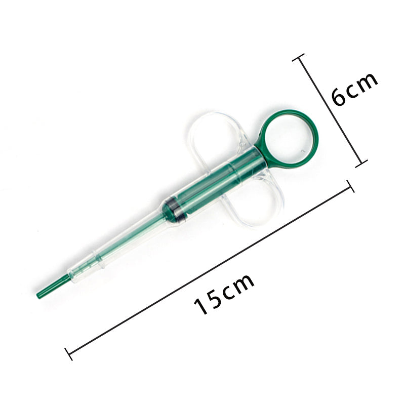 - 【Farmaka, flytende medisiner】: Fyll medisinmateren med medisin eller flytende medisin, åpne kjæledyrets munn og fest den, sikt mot halsen og trykk stempelet kraftig.