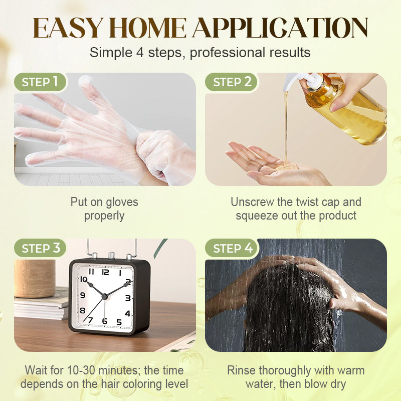 ENKEL HJEMMEFARGING - Forvandle hårfargeopplevelsen din med en utrolig grei applikasjonsprosess. Ingen blanding nødvendig; bare påfør direkte. Med bare fire enkle trinn oppnår du profesjonelt utseende resultater i komforten av ditt eget hjem, sparer tid og penger samtidig som du får kontroll over hårpleierutinen din.