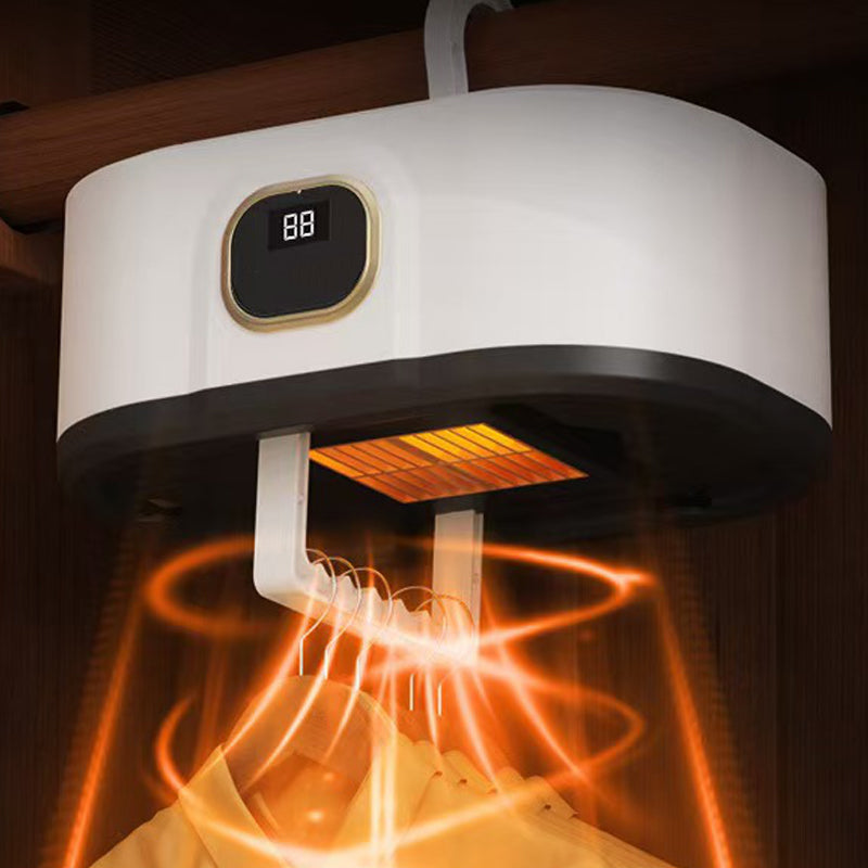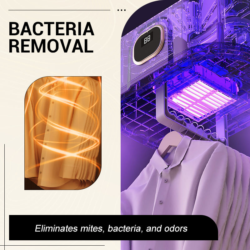 DESINFEKTIVERINGSKRAFT – Enheten er mer enn bare tørking, den bidrar til å opprettholde renslighet. Den varme luften eliminerer bakterier og støvmidd, mens innebygd negativ ionteknologi nøytraliserer lukt. Dette sikrer at klærne dine ikke bare kommer ut tørre, men også hygienisk trygge og lukter rent.
