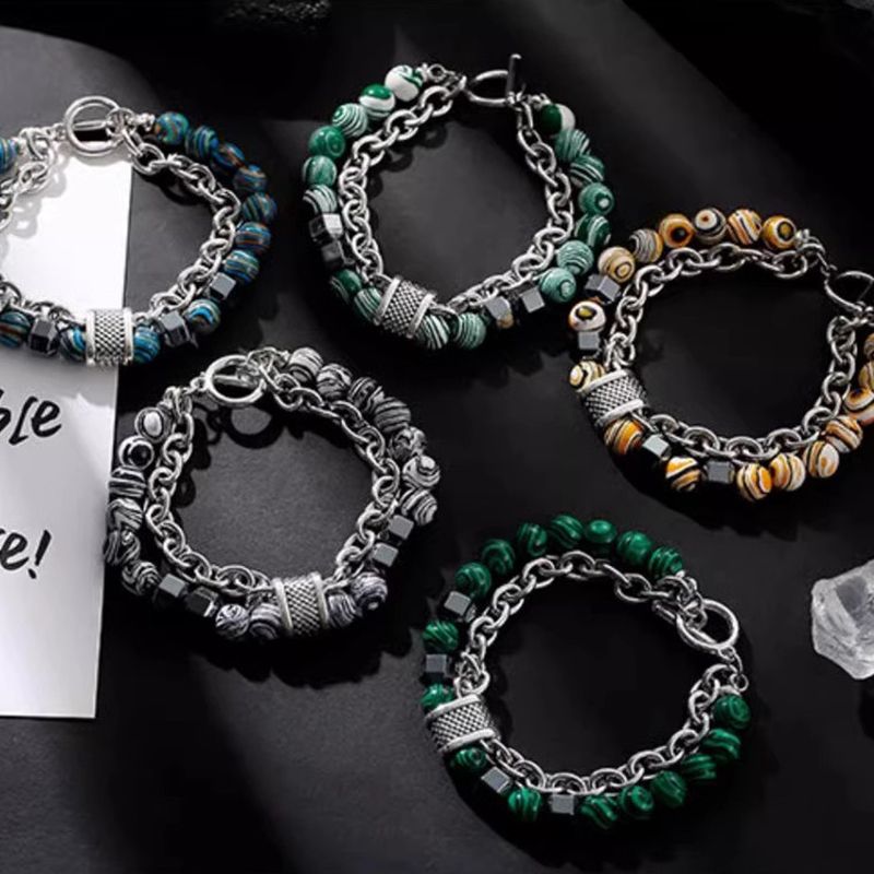 Materiale: Rustfritt stål + Legering + Svart Gallstein + Malakitt