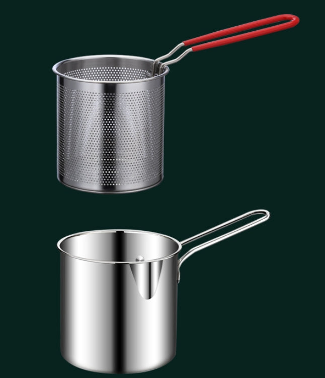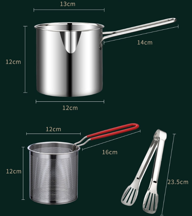 ★ 【Flerbruksbruk】: Fritøren med sil er perfekt for pommes frites, kyllingnuggets, blekksprutringer, tempura, reker osv. Den kan også brukes til å koke vann, melk, te, koke pasta, nudler og mye mer. Denne frityrgryten er kompatibel med forskjellige ovner, for eksempel gassovner, induksjonsovner osv.